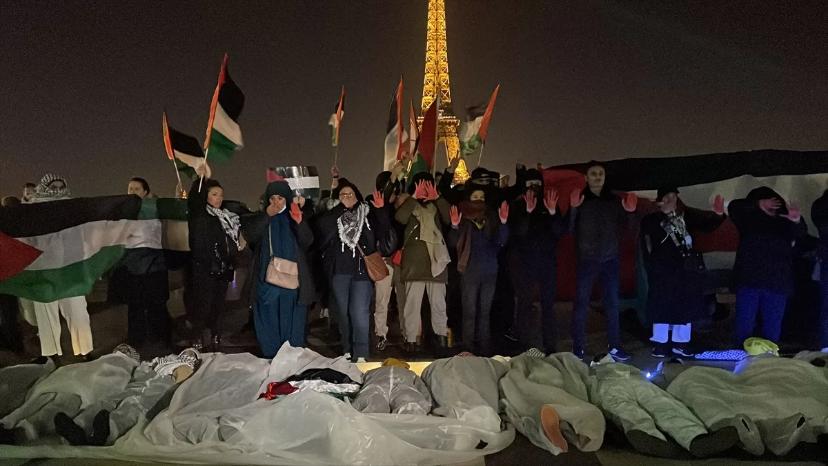 PARİS (AA) – Fransa'nın başkenti Paris'te Filistin yanlısı göstericiler, İsrail'in saldırılarında ölen Gazzeli sivilleri temsilen yere uzanarak eylem düzenledi.