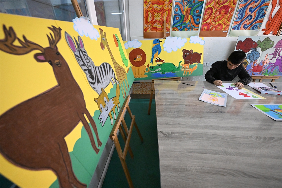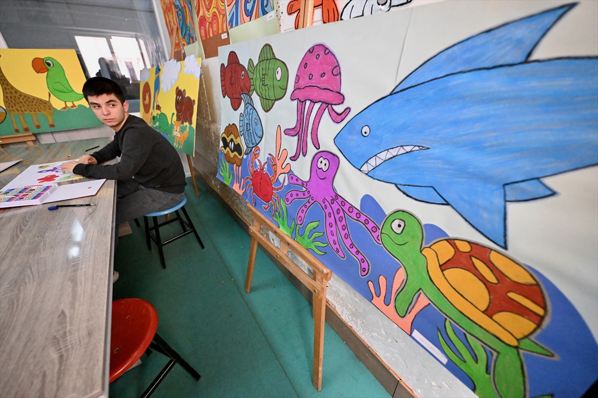 Arslan'ın resme olan ilgisini keşfetme sürecini anlatan Yılmaz, "Buraya ilk geldiğinde sınıf öğretmeniyle bunu gözlemlemiş olduk, sonra o yönde çalışmasını desteklemeye çalıştık, onun da talebi ve isteği olduğu sürece üretmesine katkı sağlayacağız." dedi.