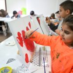 Tuval üzerine resim, sulu boya, linol baskı gibi çeşitli tekniklerle eserlerin ortaya konulduğu etkinlikte çocuk sanatçılar da yer aldı.