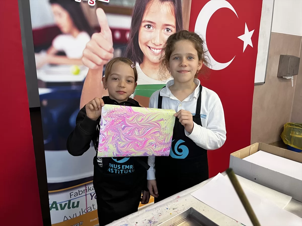 Etkinlikte, bilgi yarışması ve yapboz atölyelerine katılan öğrenciler, ebru sanatının inceliklerini öğrendi ve ebru eserleri yaptı.