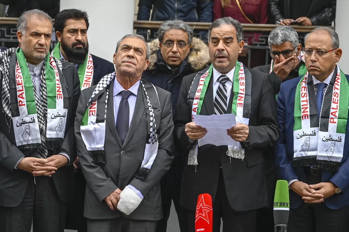 Rusya’da bulunan İslam ve Arap ülkelerinin büyükelçileri ile temsilcileri, İsrail’in saldırılarını kınamak ve basın açıklaması yapmak için Filistin’in Moskova Büyükelçiliğinde bir araya geldi.