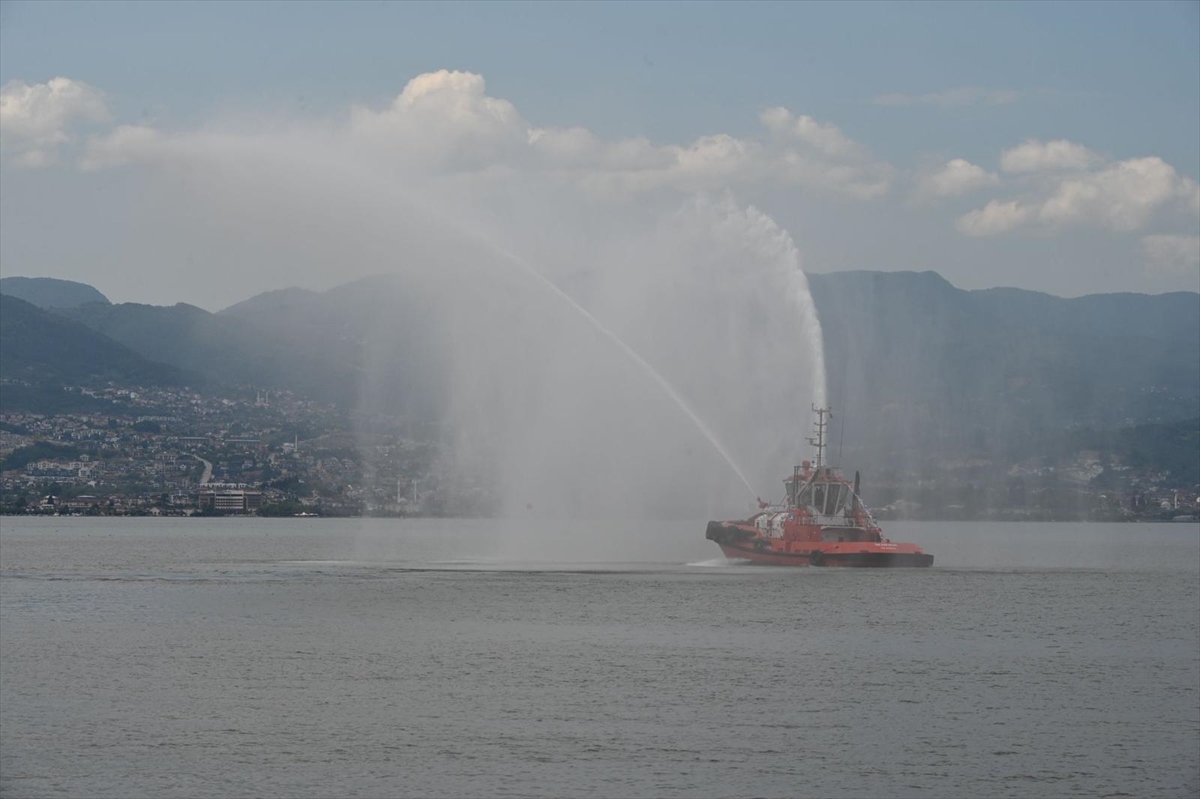 Sahil Güvenlik Komutanlığına bağlı ekipler siren çalarak tören kortejini selamladı. Liman İşletmesine bağlı römorkörler de gökyüzüne su sıkarak kutlamalara katıldı.