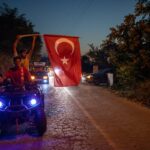 Konvoya katılan köylüler, ellerinde Türk bayraklarıyla mahalle aralarında tur attı.