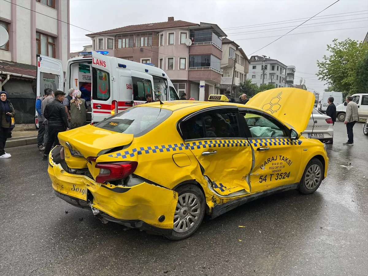 Sultan Abdülhamit Han Caddesi'nde seyreden 54 KB 649 ve 54 KD 340 plakalı otomobiller ile 54 T 3524 plakalı taksi, kavşakta çarpıştı.