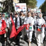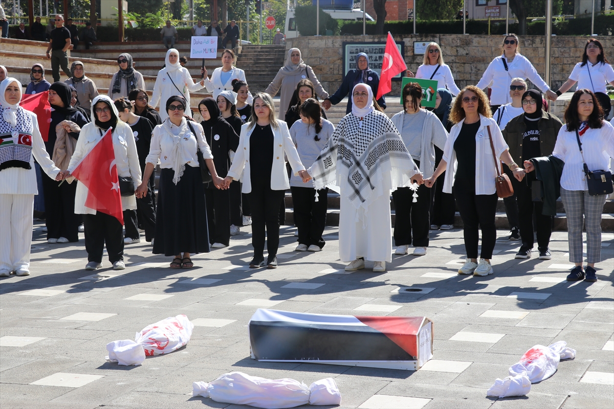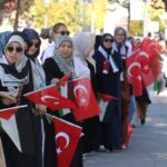 Çorum'da Kadeş Barış Meydanı'nda bir araya gelen kadınlar, ellerinde Türk ve Filistin bayraklarıyla Gazi Caddesi'nden Hürriyet Meydanı'na yürüdü.