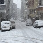 Hava sıcaklığının sıfırın altında 3 dereceye kadar düştüğü kentte kar nedeniyle çatı ve araçların üzeri beyaz örtüyle kaplandı.