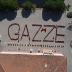 Okul bahçesinde toplanan 250 öğrenci, "Gazze" koreografisi oluşturdu, Türk bayrağı açtı.