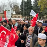 İnsan Hak ve Hürriyetleri (İHH) İnsani Yardım Vakfı Şanlıurfa Şubesi’nce düzenlenen etkinlikte Balıklıgöl Yerleşkesi’ndeki Dergah Camisi önünde toplanan vatandaşlar, taşıdıkları Türk, Filistin bayrakları ve dövizlerle Yıldız Meydanı'na kadar yürüdü.