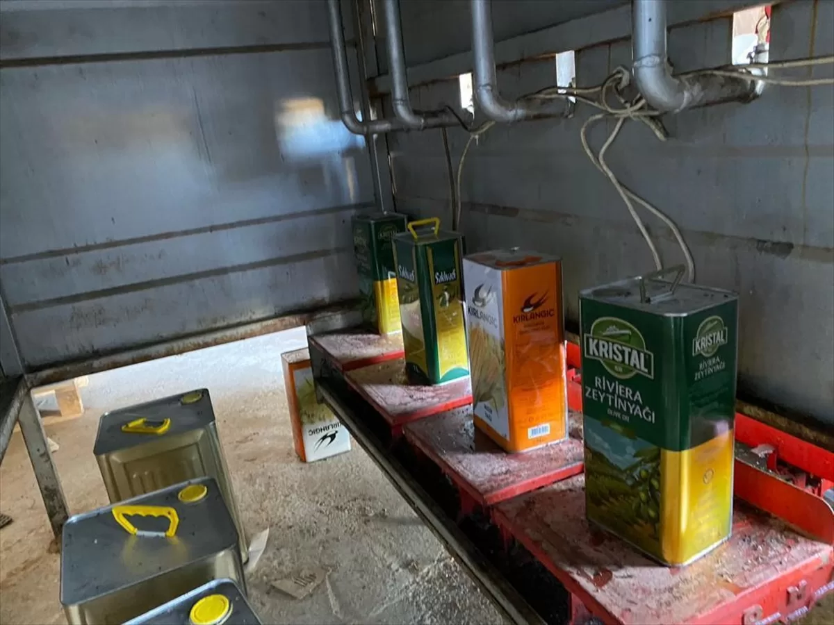 Depoda yapılan aramada, 3 bin 400 çeşitli markalarda 5 litre teneke, ambalajlarda 11 bin 236 litre sahte zeytinyağı, 3 bin 850 1 litrelik şişe ile 1100 5 litrelik doluma hazır boş teneke ve dolum malzemeleri ele geçirildi.
