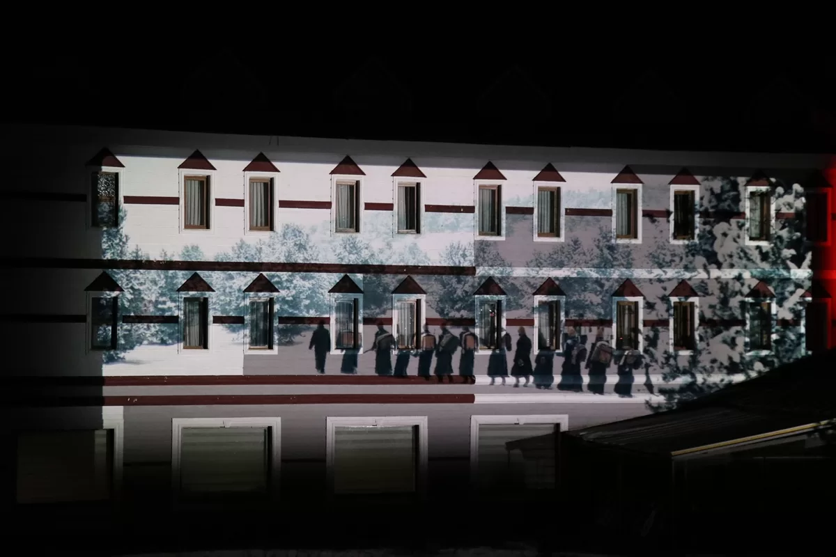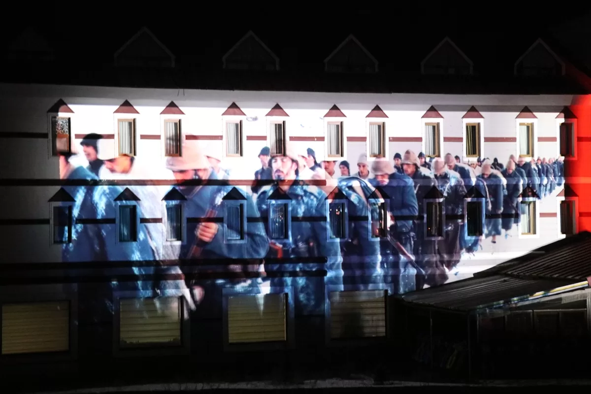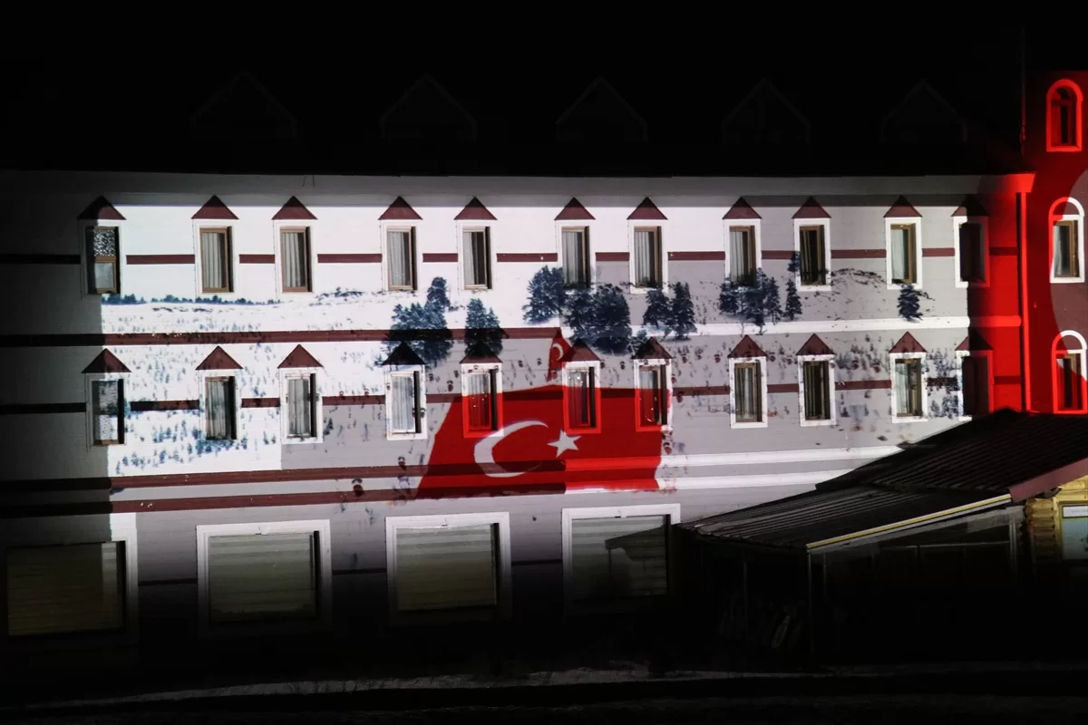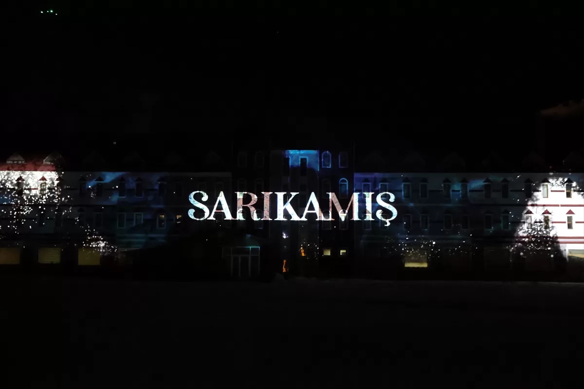 Ardından kayak merkezinde bir otelin dış yüzeyine yansıtılan görüntülerle Sarıkamış Şehitleri Mapping 3D gösterisi düzenlendi.