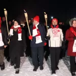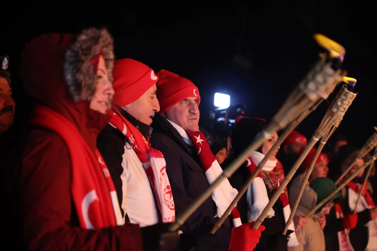 Sarıkamış Kayak Merkezi 1. Etap pistinden kayarak gelen tim, bitişine yakın bir noktada kurulan "Sarıkamış 109. yıl" yazısını, Aile ve Sosyal Hizmetler Bakanı Mahinur Özdemir Göktaş ve Gençlik ve Spor Bakanı Osman Aşkın Bak ile tutuşturdu.