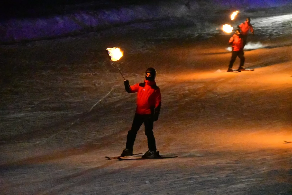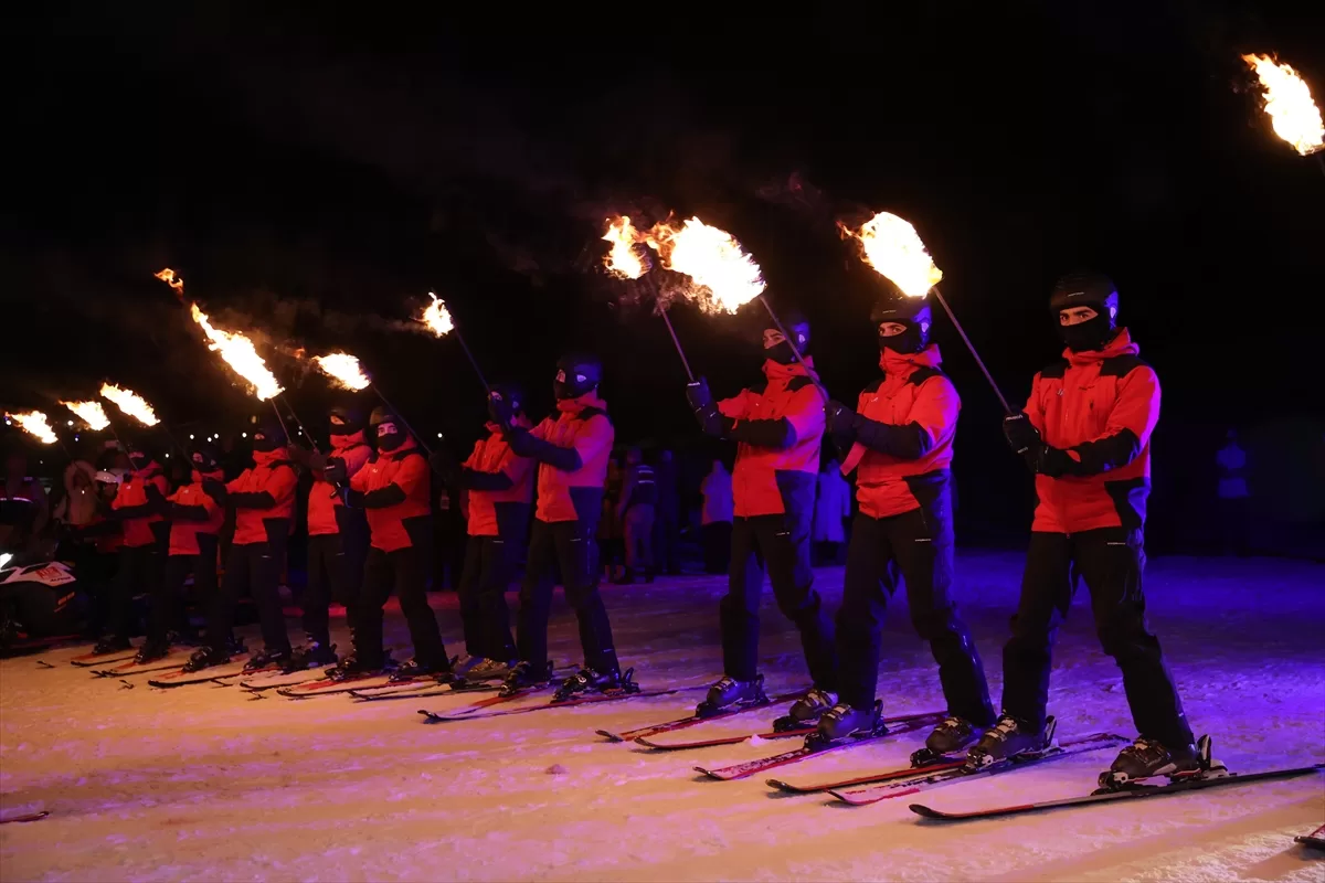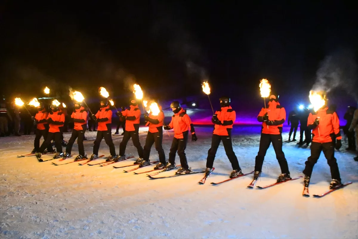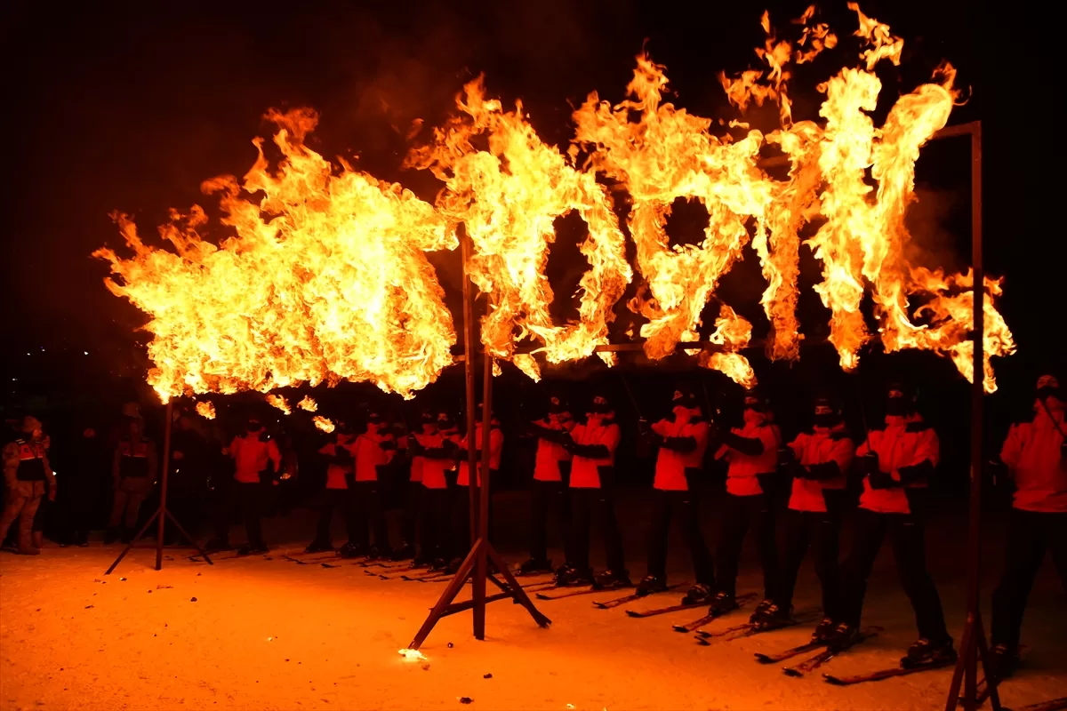 Allahuekber Dağları'nda 109 yıl önce donarak şehit olan askerlerin anısına Sarıkamış Kayak Merkezinde, Jandarma Arama Kurtarma (JAK) ekipleri tarafından meşaleli kayak gösterisi düzenlendi.