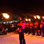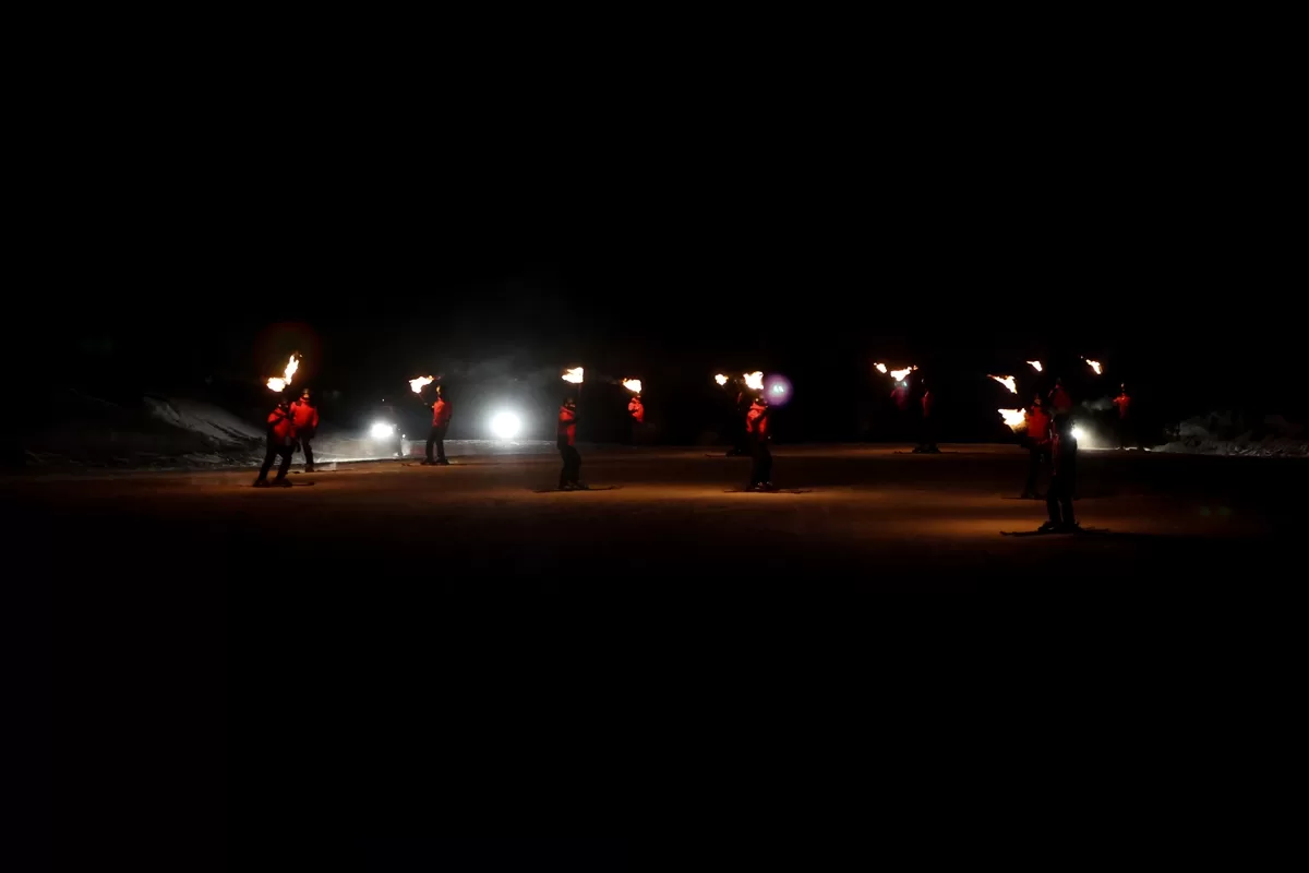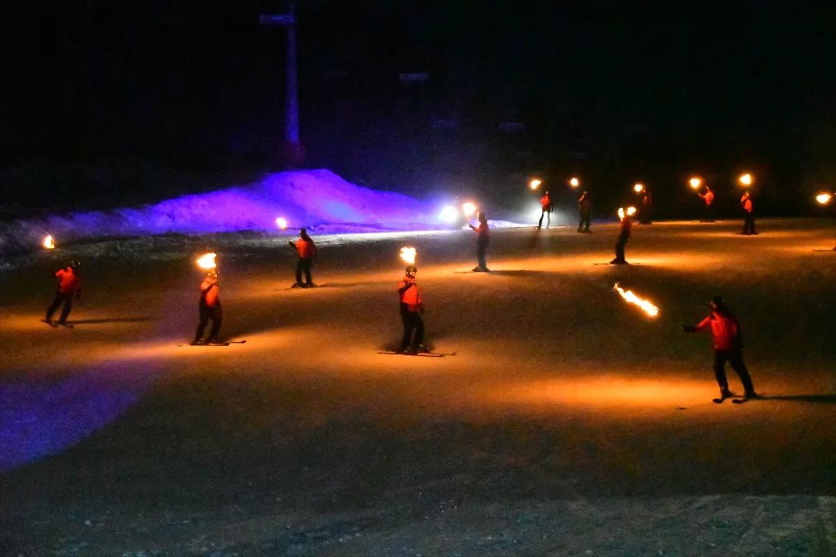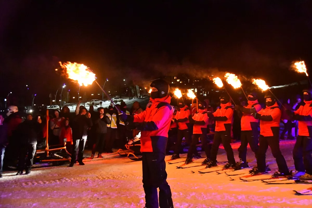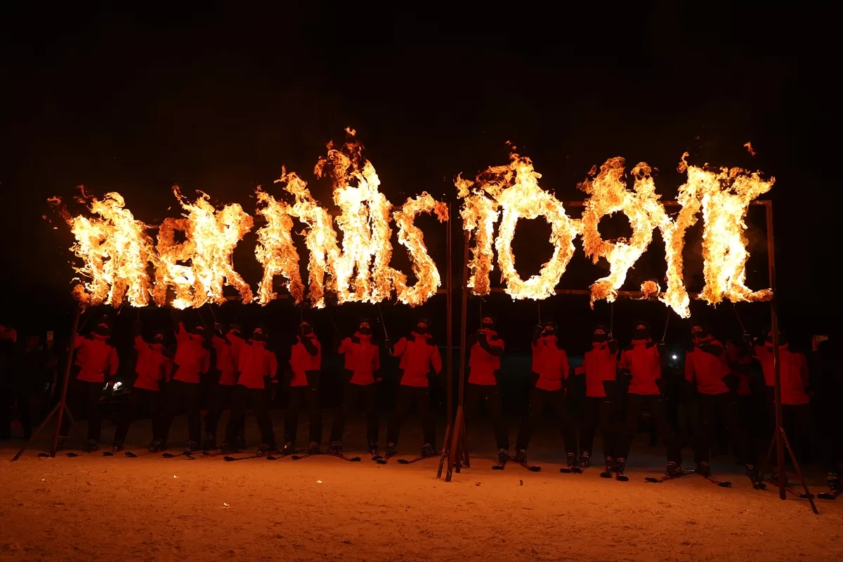 Allahuekber Dağları'nda 109 yıl önce donarak şehit olan askerlerin anısına Sarıkamış Kayak Merkezinde, Jandarma Arama Kurtarma (JAK) ekipleri tarafından meşaleli kayak gösterisi düzenlendi.