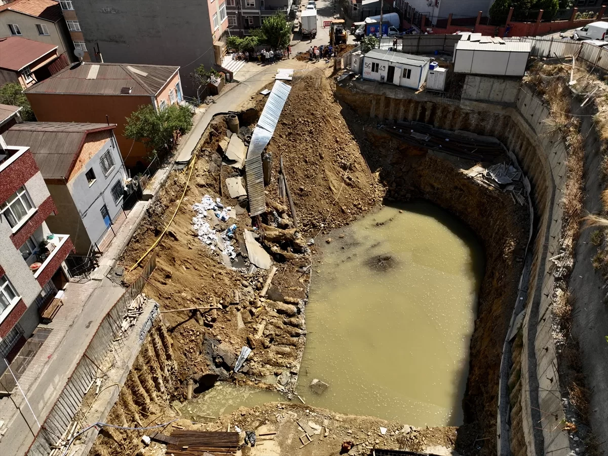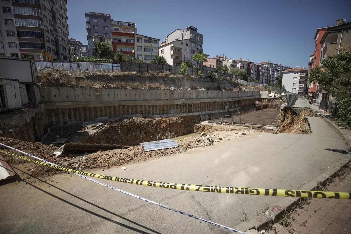 Öte yandan inşaat alanı ve yoldaki çökme anı vatandaşlar tarafından cep telefonuyla kaydedildi.