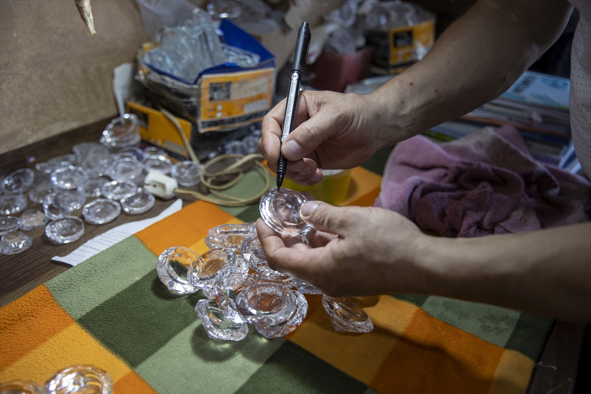 Mehmet Karamanoğlu, AA muhabirine, kristal camdan yaptığı biblo, perde aksesuarı, çekmece kulpları ve çeşitli dekoratif objelerin satışıyla geçimini sağladığını söyledi.