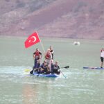 Siirt Üniversitesi Kano Sup Topluluğunun da destek verdiği programda, kano ve botlara Türk ve Filistin bayrakları asıldı.