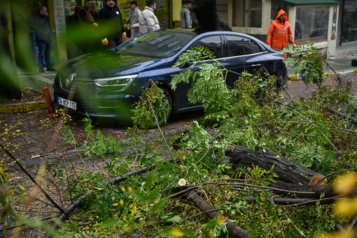 Fırtına nedeniyle yerinden sökülen ağaçlar ile molozlar da suyla etrafa taşındı.