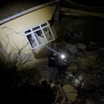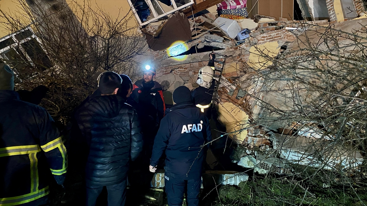 Zarar gören evlerden 2 kişiyi yaralı olarak çıkaran ekipler, mahsur kalanların kurtarılması için çalışmalarına devam ediyor.
