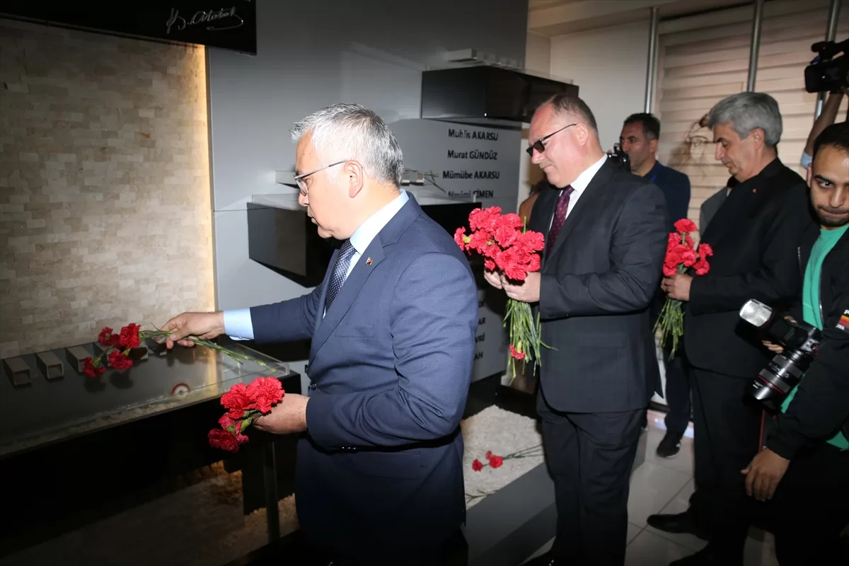 Vali Şimşek ve beraberindekiler, olaylarda yaşamını yitirenlerin isimlerinin yazılı olduğu anı köşesine karanfil bıraktı.