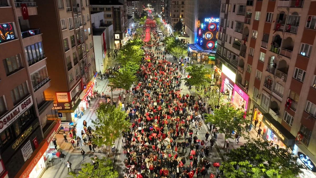 Yürüyüşün ardından tarihi şehir meydanına gelen protokol üyeleri ve vatandaşlar ay yıldızlı bayraklar eşliğinde İstiklal Marşını okudu. Etkinlik, havai fişek gösterisiyle sona erdi.