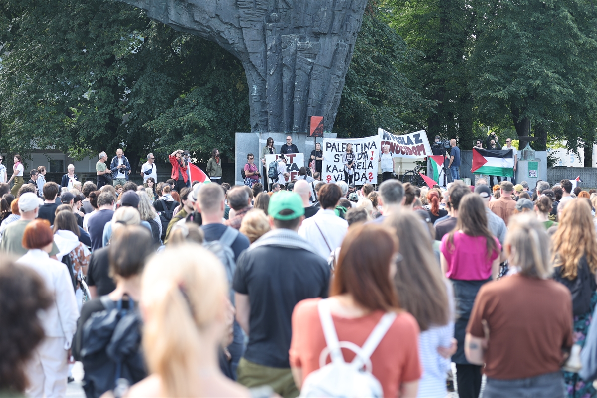 Başkentteki Cumhuriyet Meydanı'nda toplananlar, "Gazze aç, hükümet ne yapıyor", "Slovenya, Gazze'deki soykırımı durdurmak için harekete geç" yazılı dövizler taşıdı.