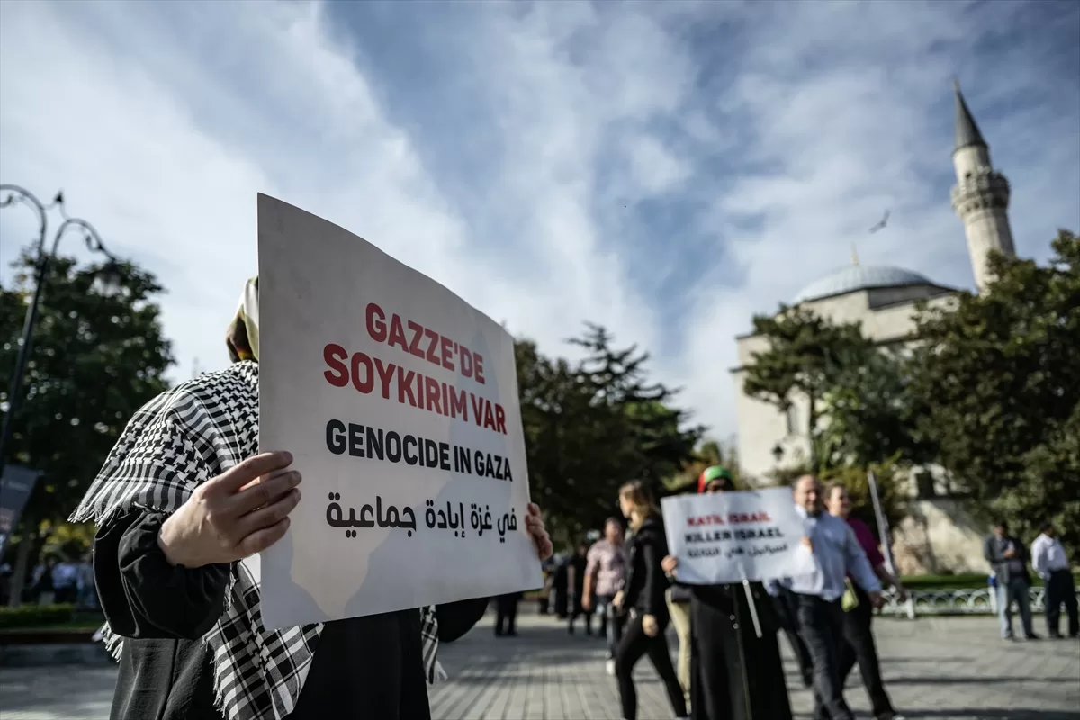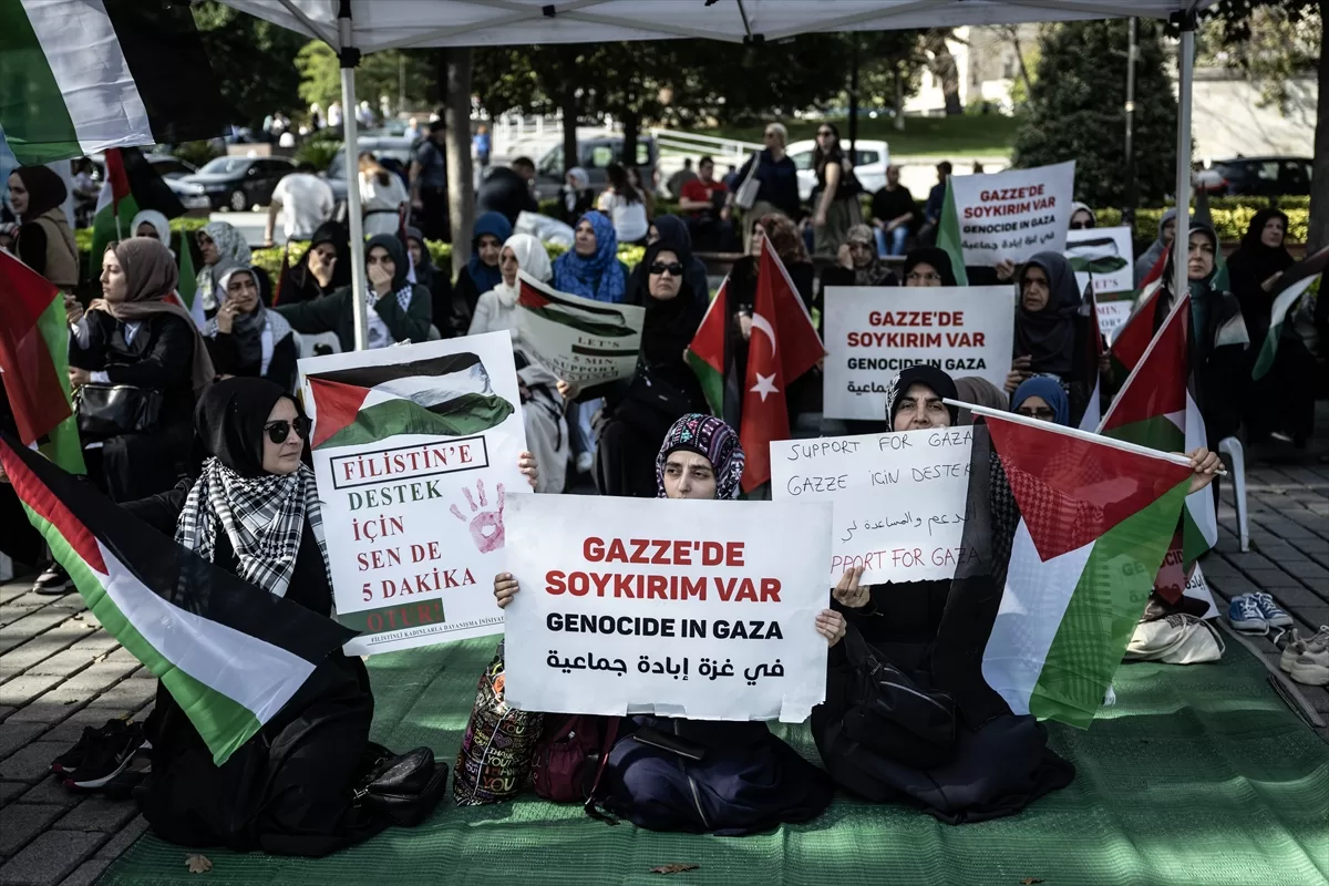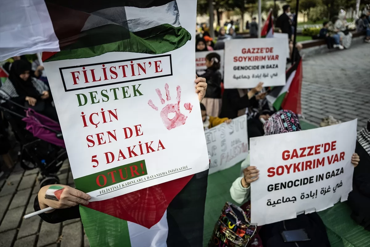 İSTANBUL (AA) – Filistinli Kadınlarla Dayanışma İnisiyatifi, İsrail'in Filistin'e yönelik saldırılarını protesto etmek için Sultanahmet Meydanı'nda başlattığı 15 günlük sessiz oturma eylemi, üçüncü gününde devam ediyor.