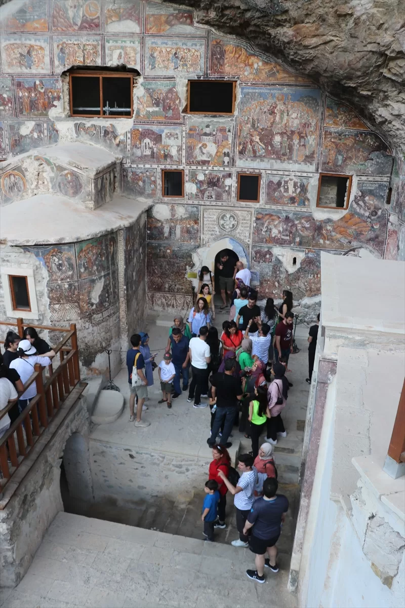 Doğa, tarih ve kültürü bir arada sunan Sümela Manastırı, her dönem olduğu gibi bayram tatilinde de yerli ve yabancı turistlerin ilgi odağındaydı.