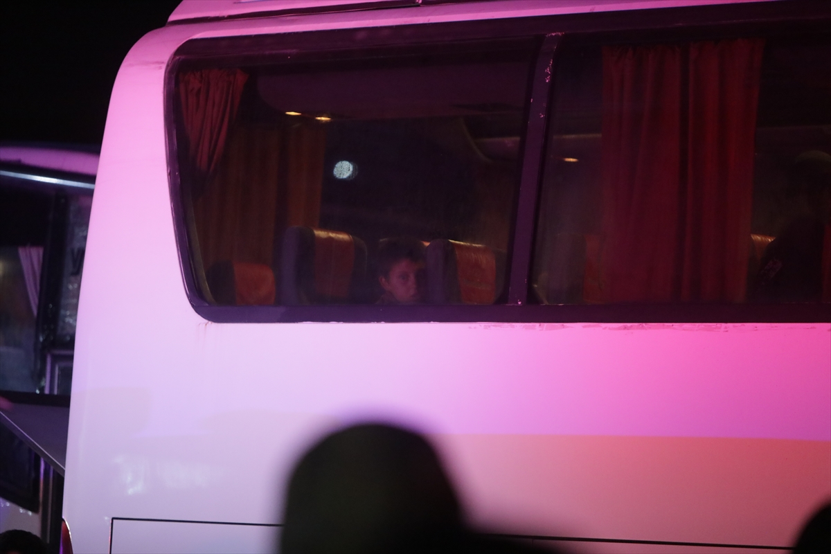 Aileler, eşyalarıyla birlikte Suriye’nin kuzeybatısında yer alan Bab kentindeki Feyza Stadyumu'na ulaştırıldı.