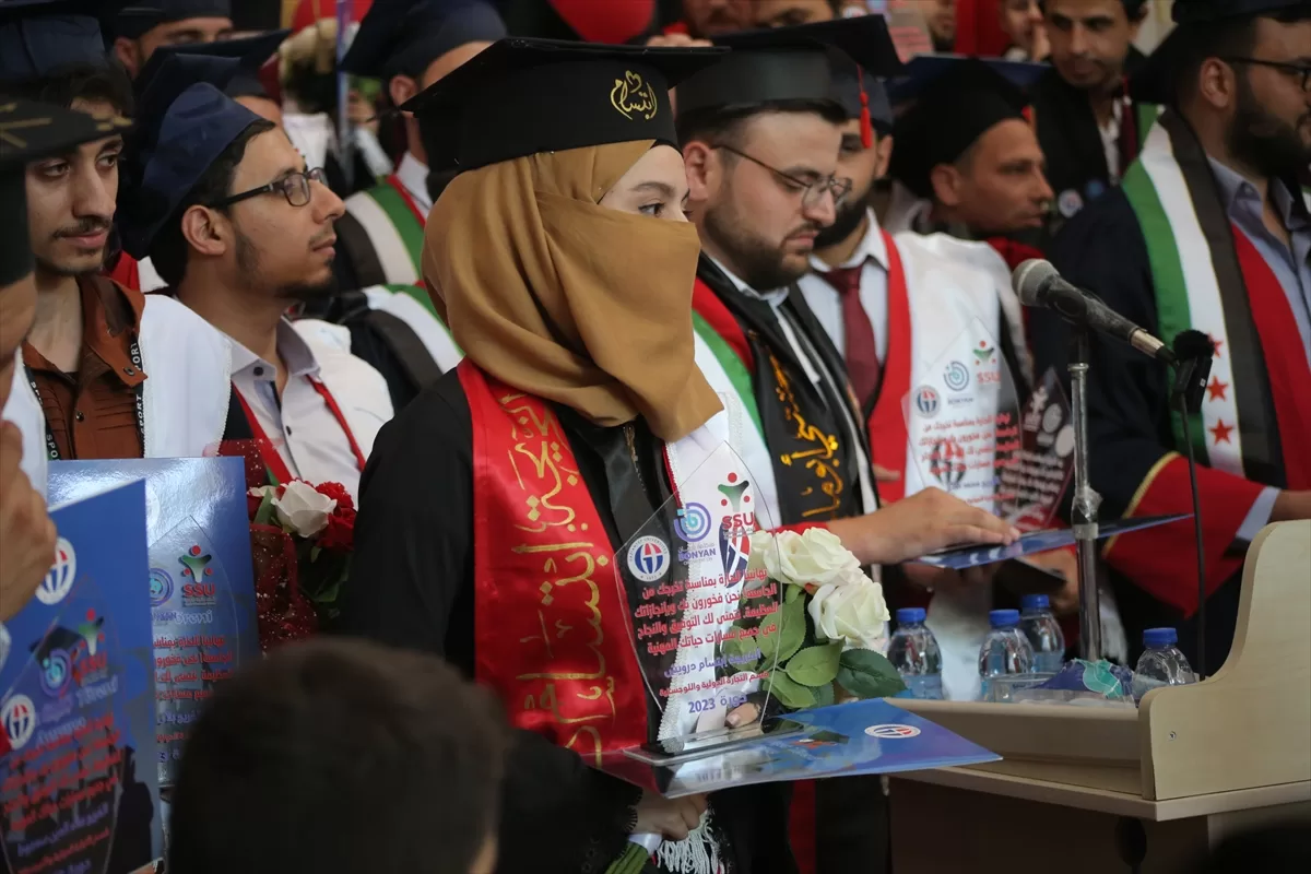 İktisat mezunu Bekri Hallak da "13 yıl önce Halep Üniversitesinde bilgisayar mühendisliğinde eğitime başlamıştım. Suriye'deki olaylardan dolayı eğitimime ara vermek zorunda kalmıştım ancak 2019'da yazıldığım bu fakülteden bugün mezun oldum." diye konuştu.