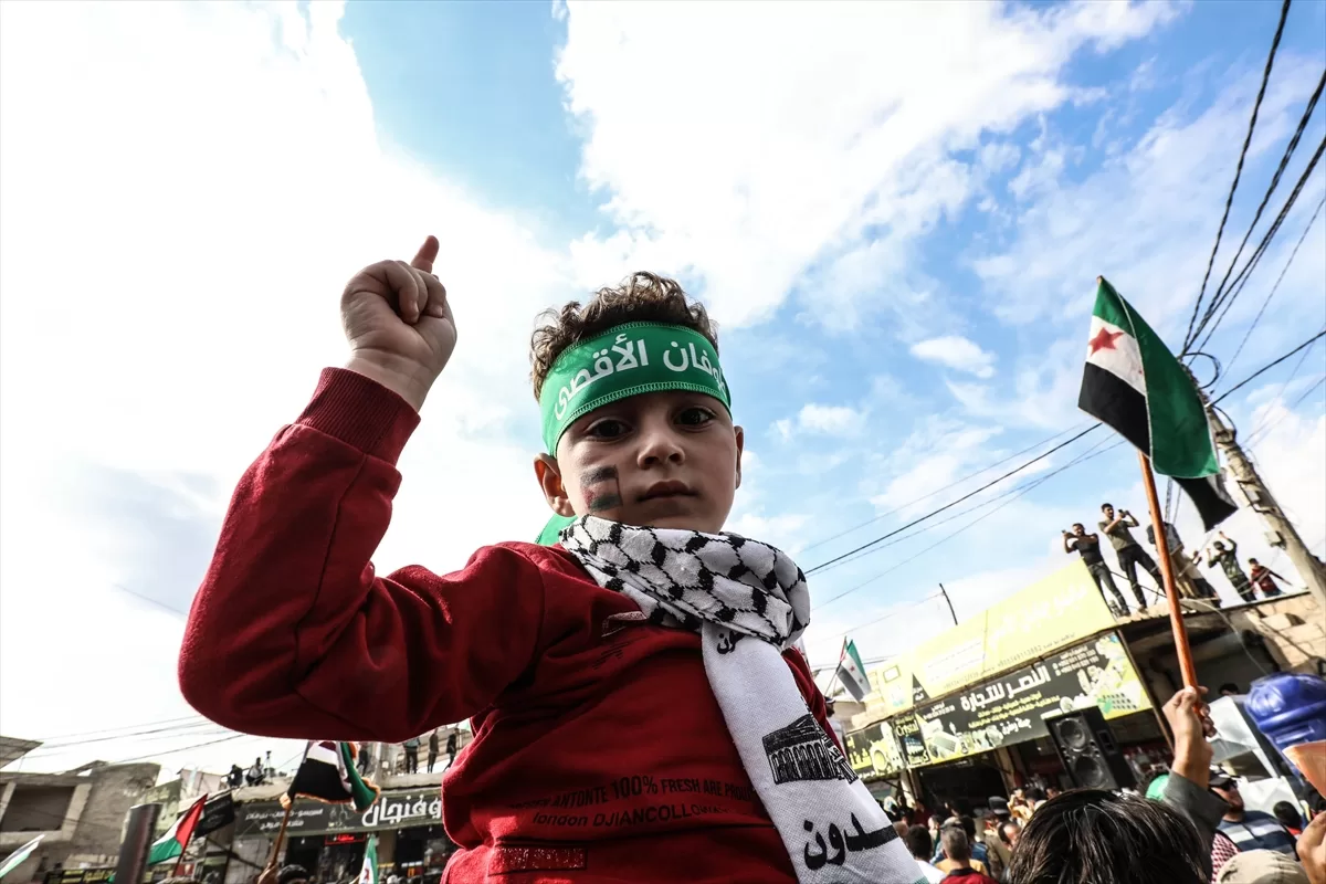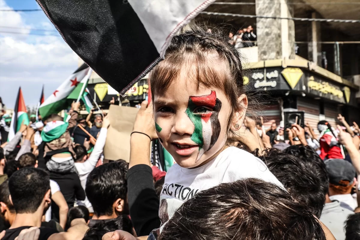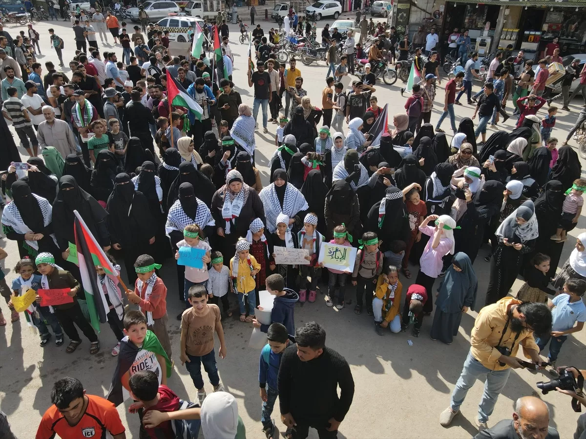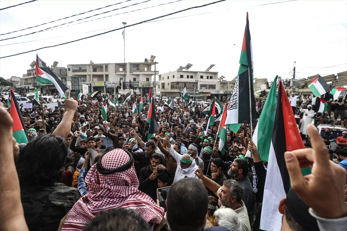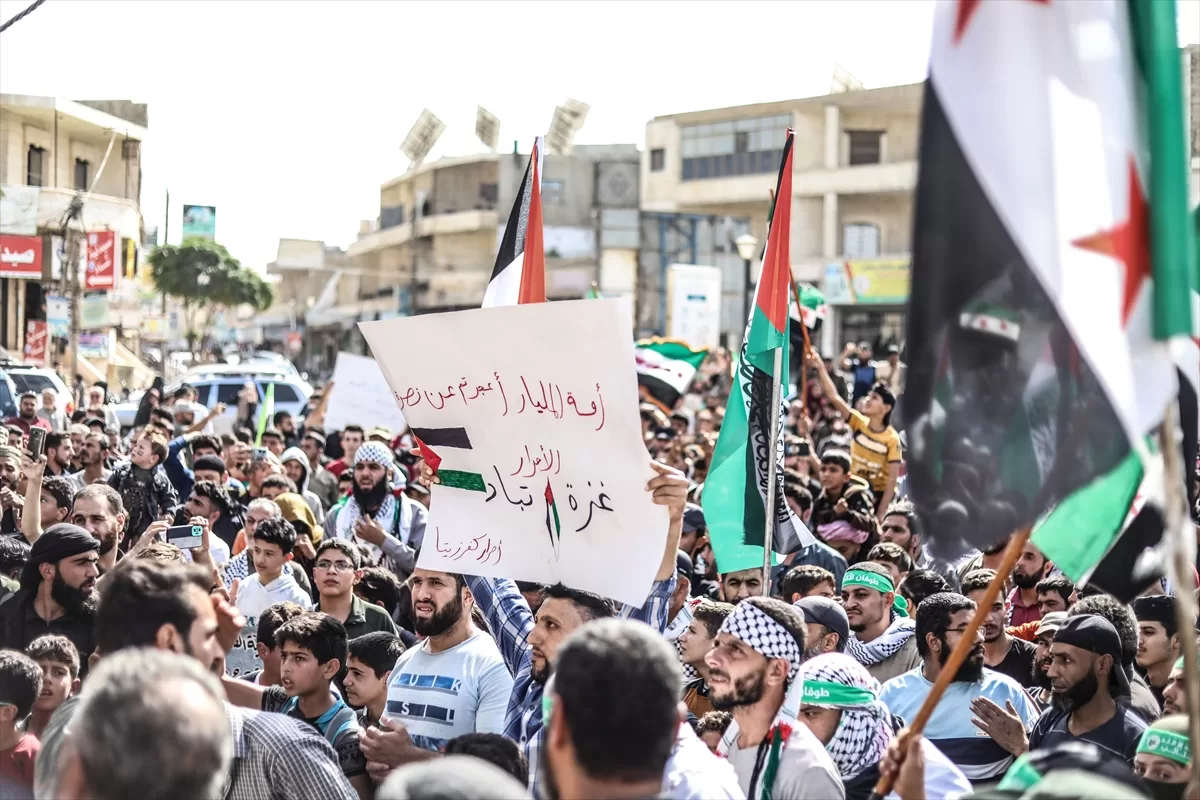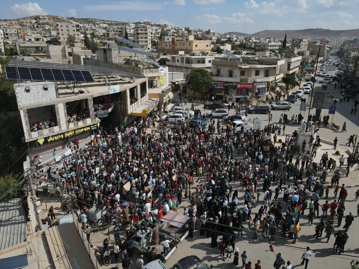 İdlib'nin kuzey kırsalındaki Atme, Dana ve Maarrat Misrin bölgelerinde binlerce kişi, İsrail'in yoğun saldırısı altındaki Gazze'ye destek için bir araya geldi.