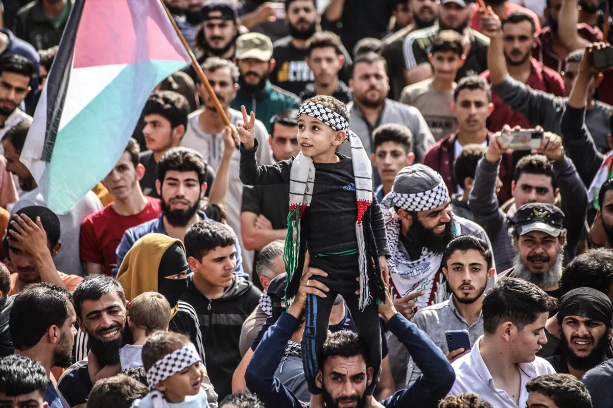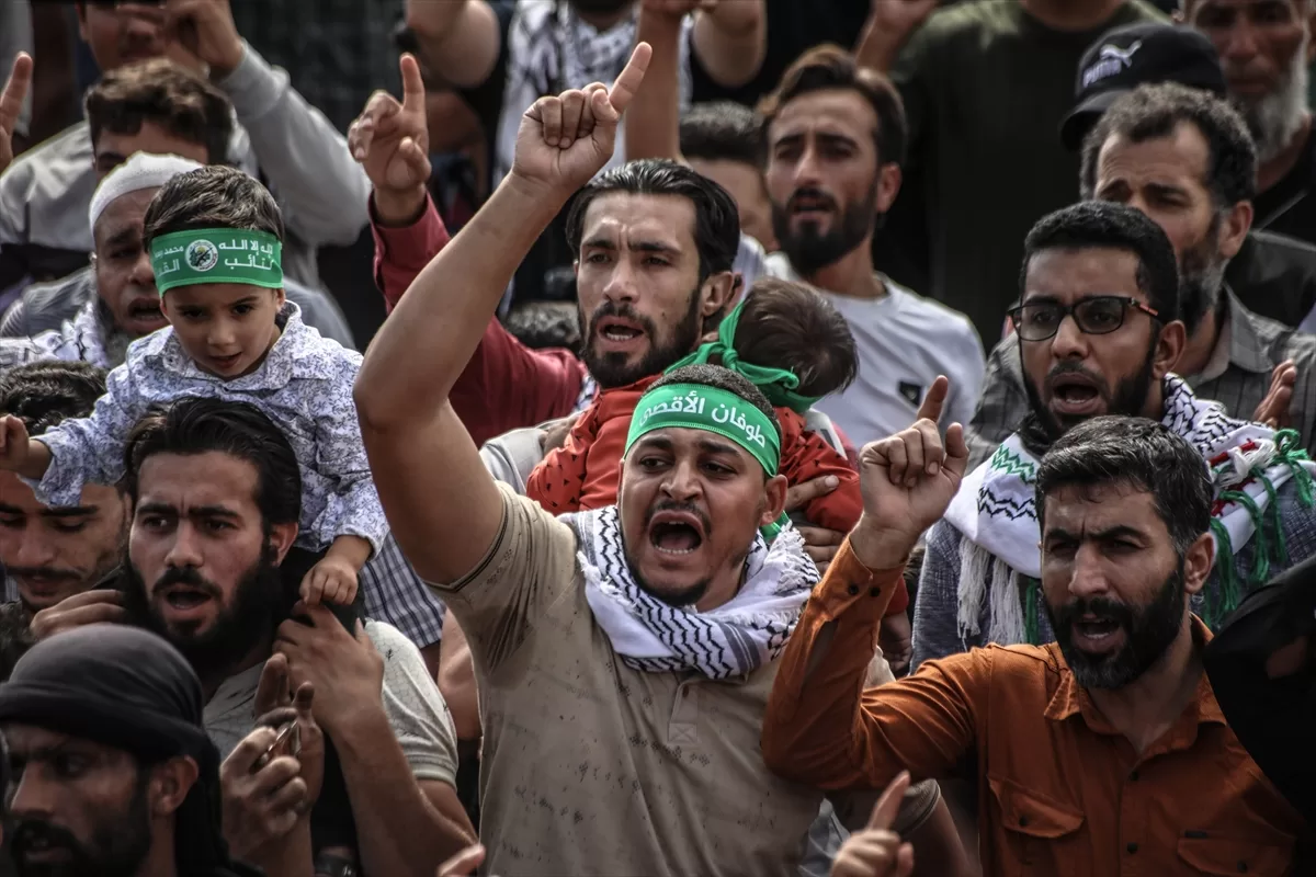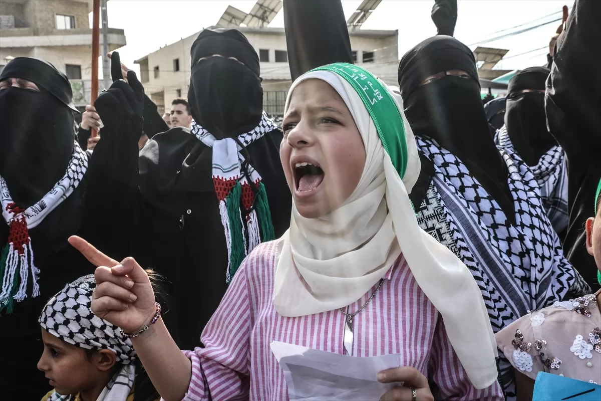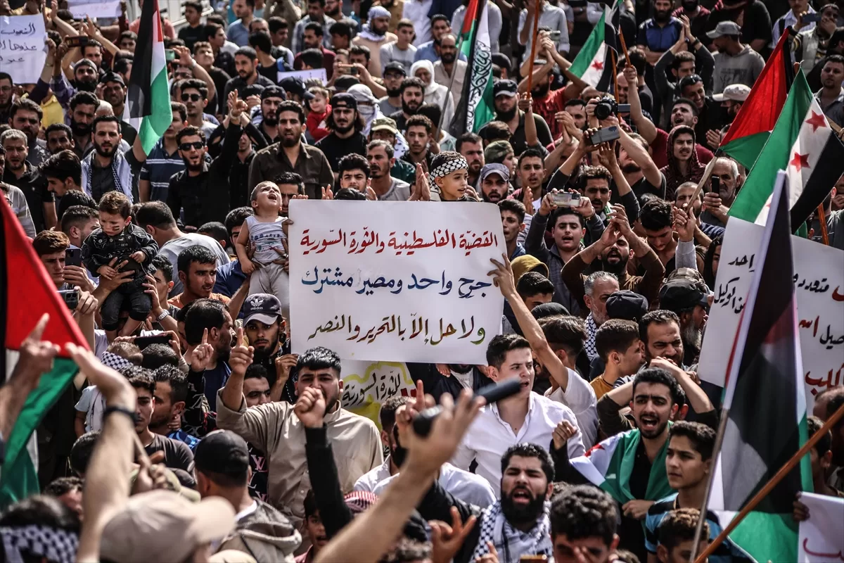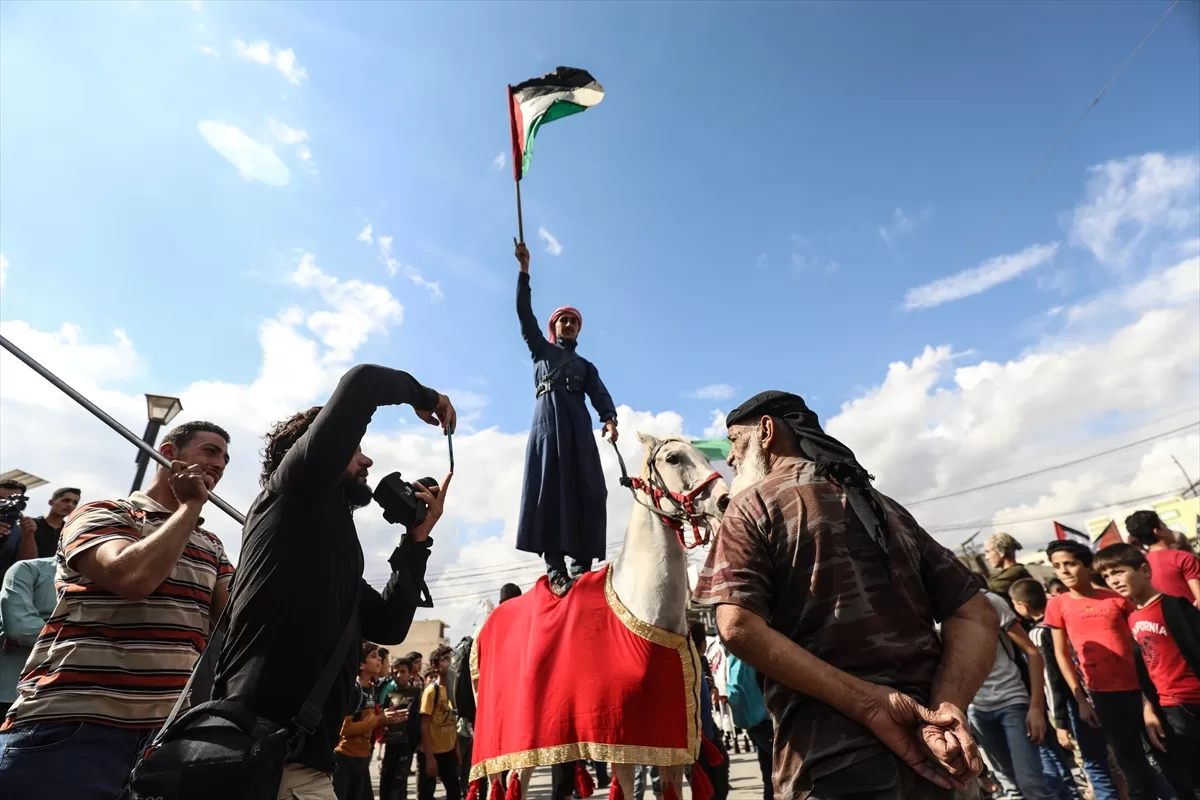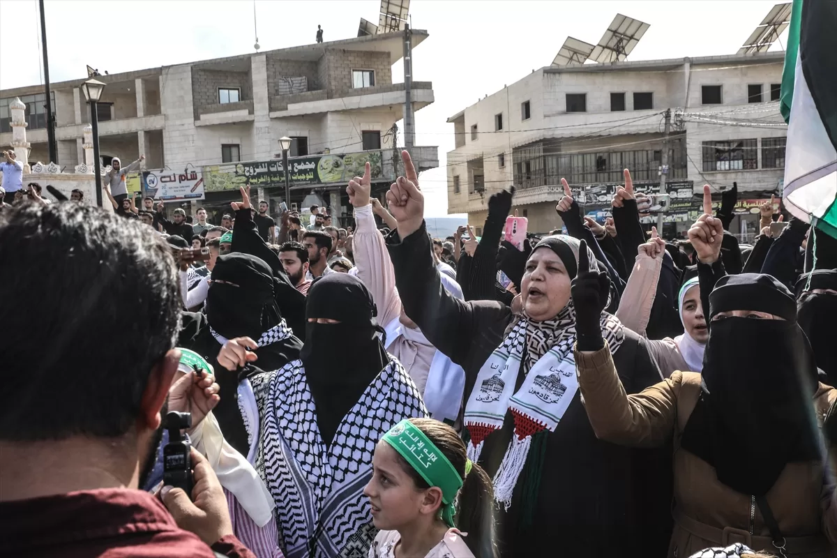 İdlib'nin kuzey kırsalındaki Atme, Dana ve Maarrat Misrin bölgelerinde binlerce kişi, İsrail'in yoğun saldırısı altındaki Gazze'ye destek için bir araya geldi.