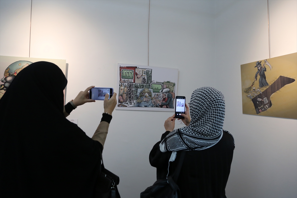 Tahran'daki Filistin Meydanı'nda yer alan Filistin Çağdaş Sanat Müzesi'nde İsrail'in insanlığa karşı işlediği suçları anlatan karikatür sergisinin açılışı yapıldı.