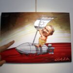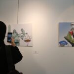 Sergide, İranlı karikatürist ve sanatçıların çizimleri dikkat çekiyor. Eserlerde, savaşın yarattığı yıkım, sivil kayıplar, çocukların maruz kaldığı şiddet ve uluslararası toplumun sessizliği gibi temalar öne çıkıyor. Bazı karikatürlerde, Filistin halkının günlük yaşamına sirayet eden şiddet ironik bir dille aktarılıyor.