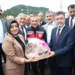 Çeşitli programlara katılmak üzere Ordu'ya gelen Yumaklı, Perşembe ilçesinde bir üreticiye ait fındık bahçesinde açıklamalarda bulundu.