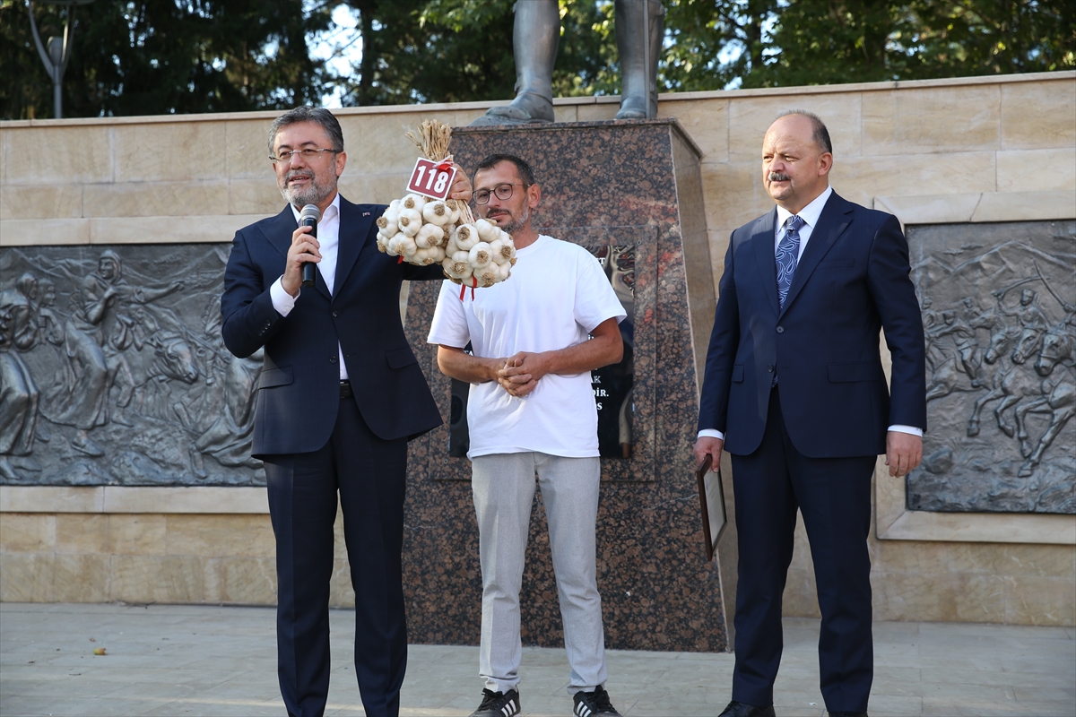 Cumhuriyet Meydanı'nda düzenlenen "En iyi sarımsak yetiştiricisi" yarışmasını takip eden Bakan Yumaklı, burada Taşköprü sarımsağının öneminden bahsetti.