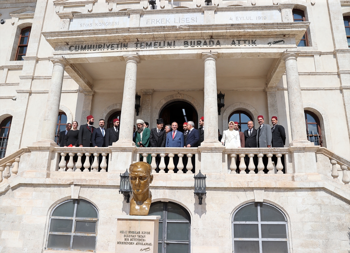 Bozdağ, salondaki tarihi sıralara oturarak sanatçılar tarafından hazırlanan Sivas Kongresi'nin temsili canlandırılmasını takip etti.