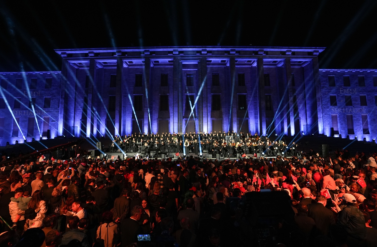 Konserin ardından, geçmişten günümüze Türk tarihini anlatan ışık ve mapping gösterisi yapıldı. Gösteriyle, 1071’den 2024’e kadar geçen zaman, Meclis ana binasının yüzeyine yansıtıldı.