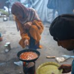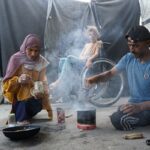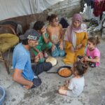 Yardım dağıtım noktasından getirdiği fasulye konservesini eşiyle birlikte yaktıkları ateşte ısıtan ve çocuklarıyla birlikte yiyen İbrahim, her gün bakliyat, un, mercimek, pirinç ve makarna gibi şeyler yediklerini ve 2 yıldır bunları yemekten usandıklarını dile getirdi.