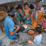 Bazen aşevlerinden gidip yemek almaya çalıştığını bazen de komşudan ekmek istediklerini kaydeden baba, "Yiyecek bulursak yiyoruz yoksa tuzlu suyla öğünü geçiştiriyoruz. Mercimek yedikten sonra çocuklara hemen acıkmamaları için tuzlu su içmelerini söylüyorum." diye konuştu.