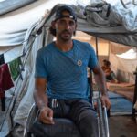 GAZZE (AA) – İsrail'in 2014 yılında Gazze'ye düzenlediği saldırılarda iki bacağını da kaybeden 37 yaşındaki İbrahim Abduddayim ölüm tehlikesine rağmen çocuklarının karnını doyurmak için tekerlekli sandalyesiyle ABD-İsrail güdümündeki sözde insani yardım dağıtım noktasına gitmek zorunda kalıyor.