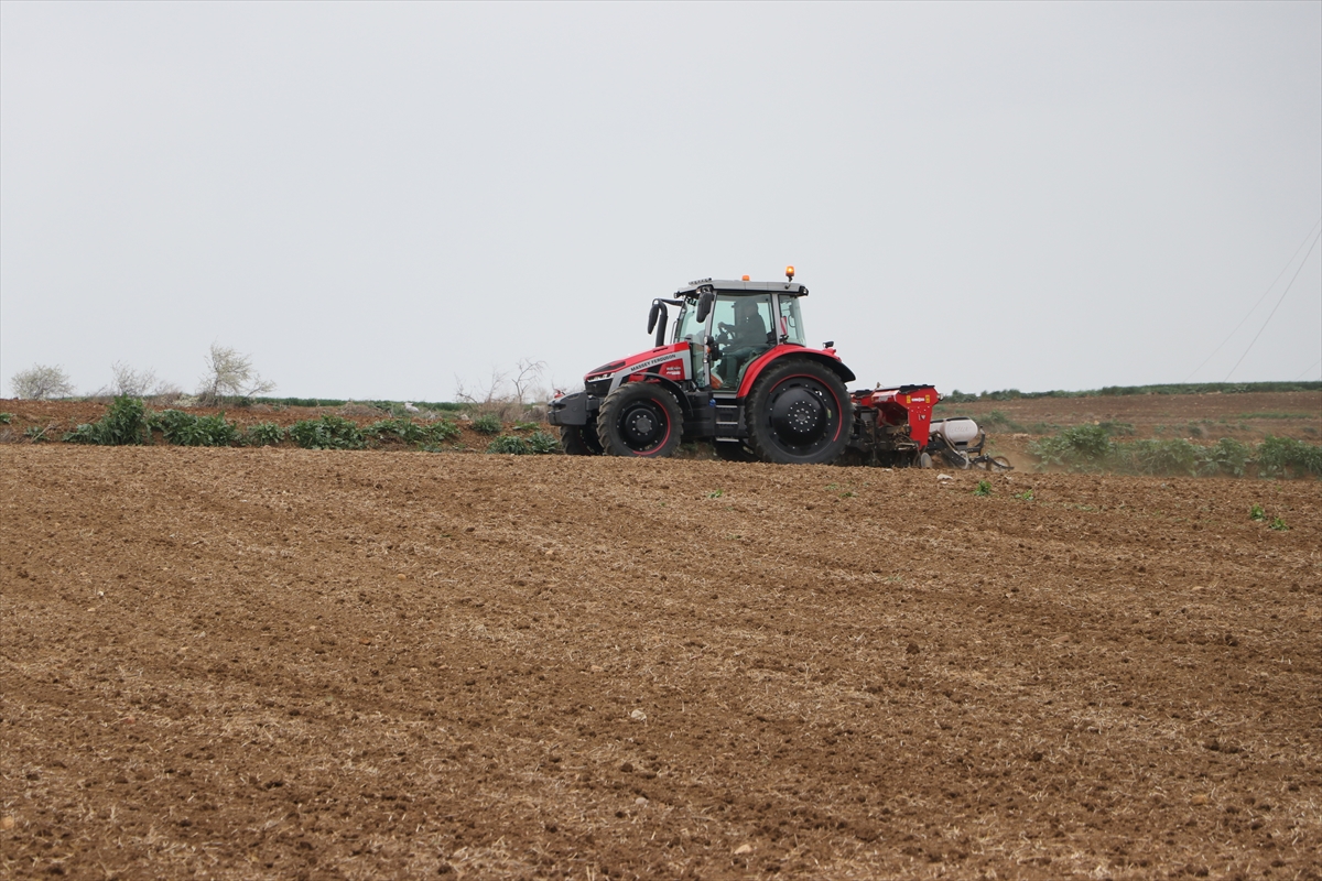 Tekirdağlı çiftçiler, tarlalarında ayçiçeği tohumlarını toprakla buluşturuyor.