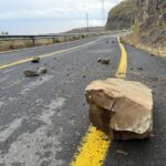 TEKİRDAĞ (AA) – Tekirdağ'ın Şarköy ilçesinde etkili olan sağanak nedeniyle yamaçlardan kopan kaya parçaları kara yoluna düştü.