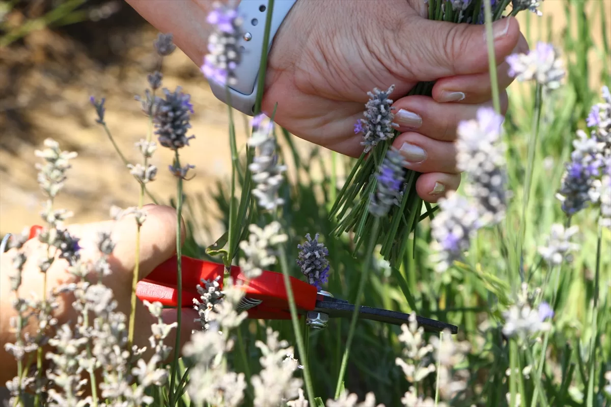 Yazır Mahallesi'nde lavanta tarlası bulunan Ahmet Akçakaya, AA muhabirine, lavanta konusunda farkındalık yaratmak adına bağ makasları ile lavanta hasadı düzenlediklerini söyledi.