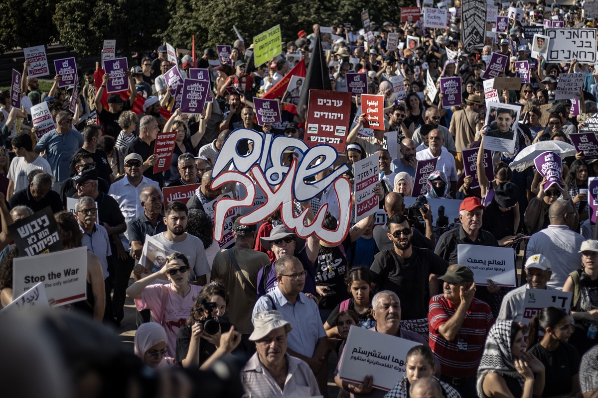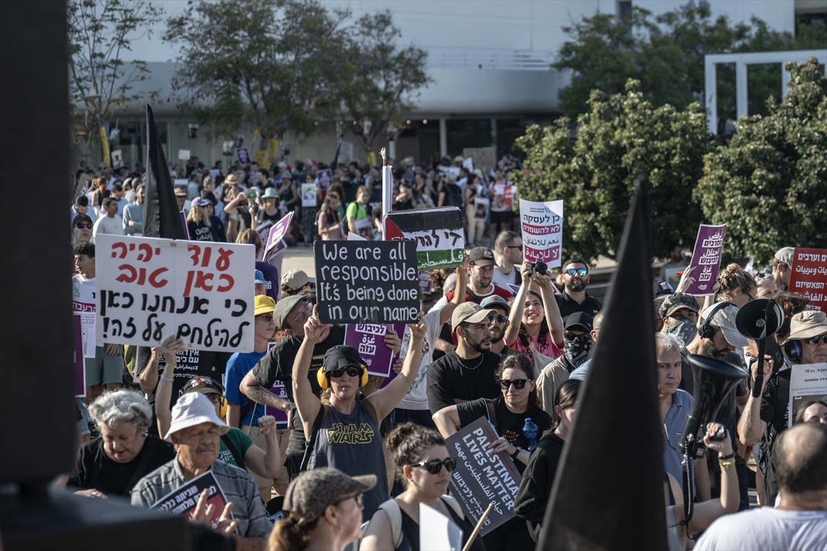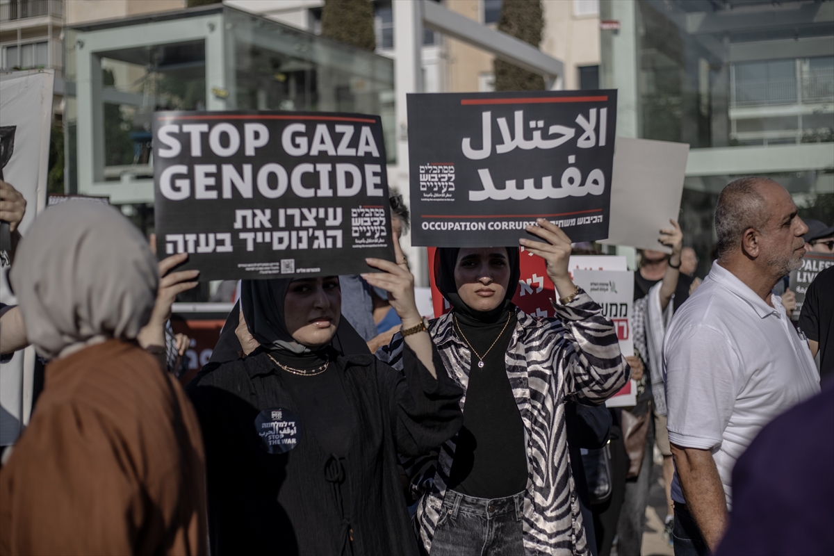 TEL AVİV (AA) – İsrailliler ve İsrail vatandaşı Filistinliler, İsrail'in Gazze'de devam eden soykırımının durdurulması çağrısıyla protesto gösterisi düzenledi.