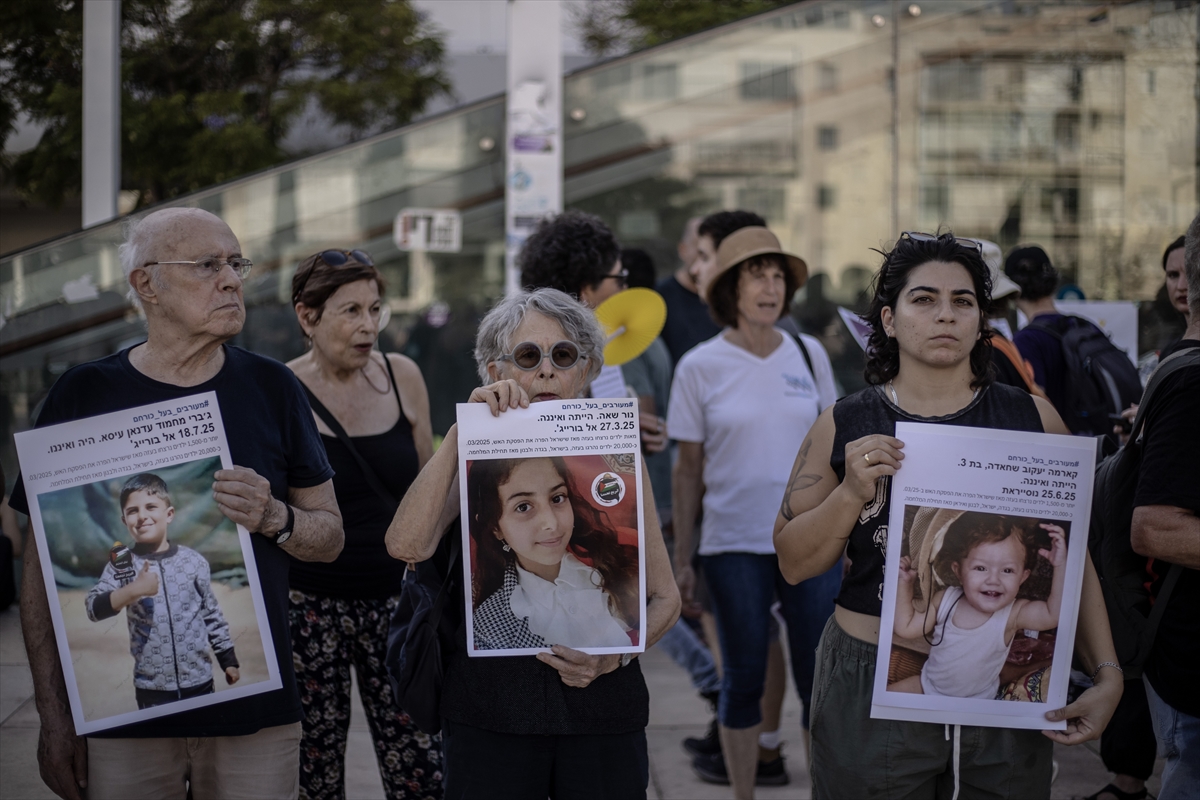 Başkent Tel Aviv'deki sembolik Habima Meydanı'nda toplanan yaklaşık 2 bin gösterici, "Soykırımı durdurun", "Gazze'den Cenin'e çocukları öldürmeyin", "Açlık savaş suçu bunu engelleyin" yazılı pankartlar taşıdı.