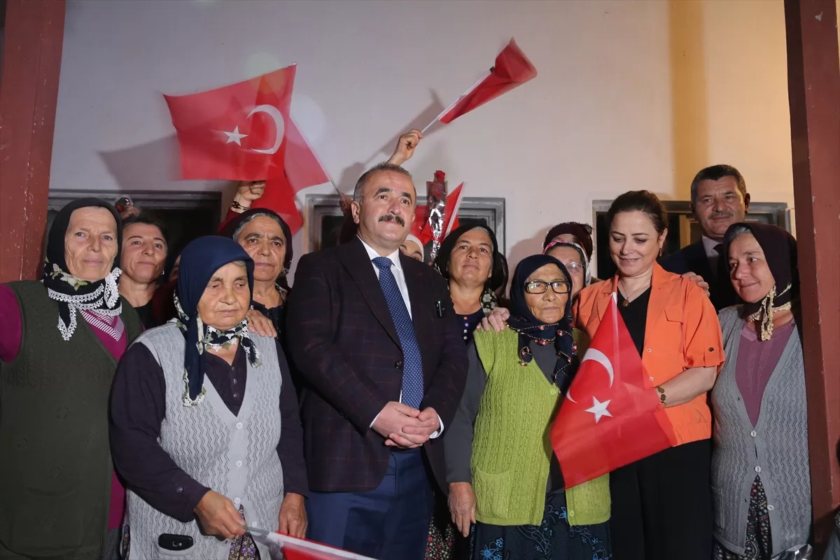 Hatipoğlu, ilçeden çocuklarla Çiftlik köyünde, Cumhuriyet'in 100. yılını kutlamak için köy okulu önünde bir araya gelen ve çocukken öğrendikleri şiirleri okuyan kadınları ziyaret etti.