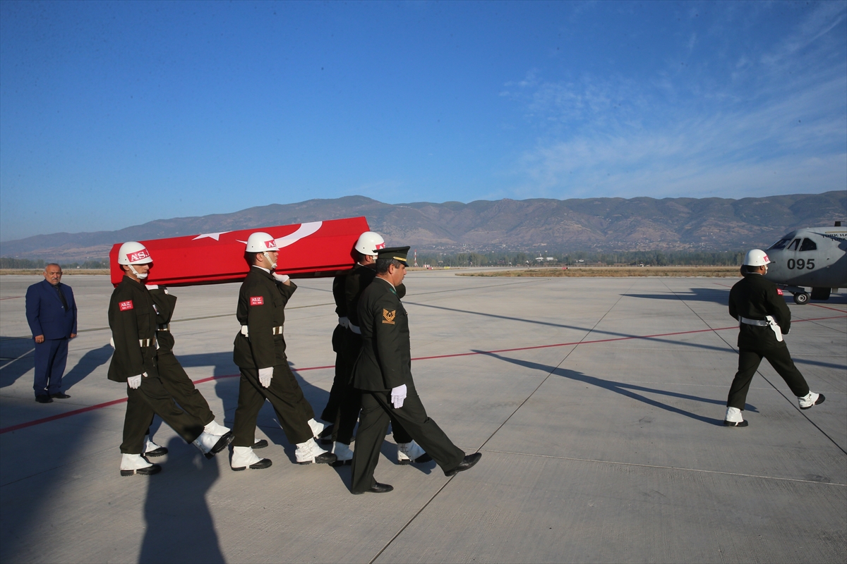 Şehit Piyade Er Eyüp Güner'in cenazesi, tören mangası eşliğinde askeri uçağa konularak baba ocağı Gaziantep'e uğurlandı.