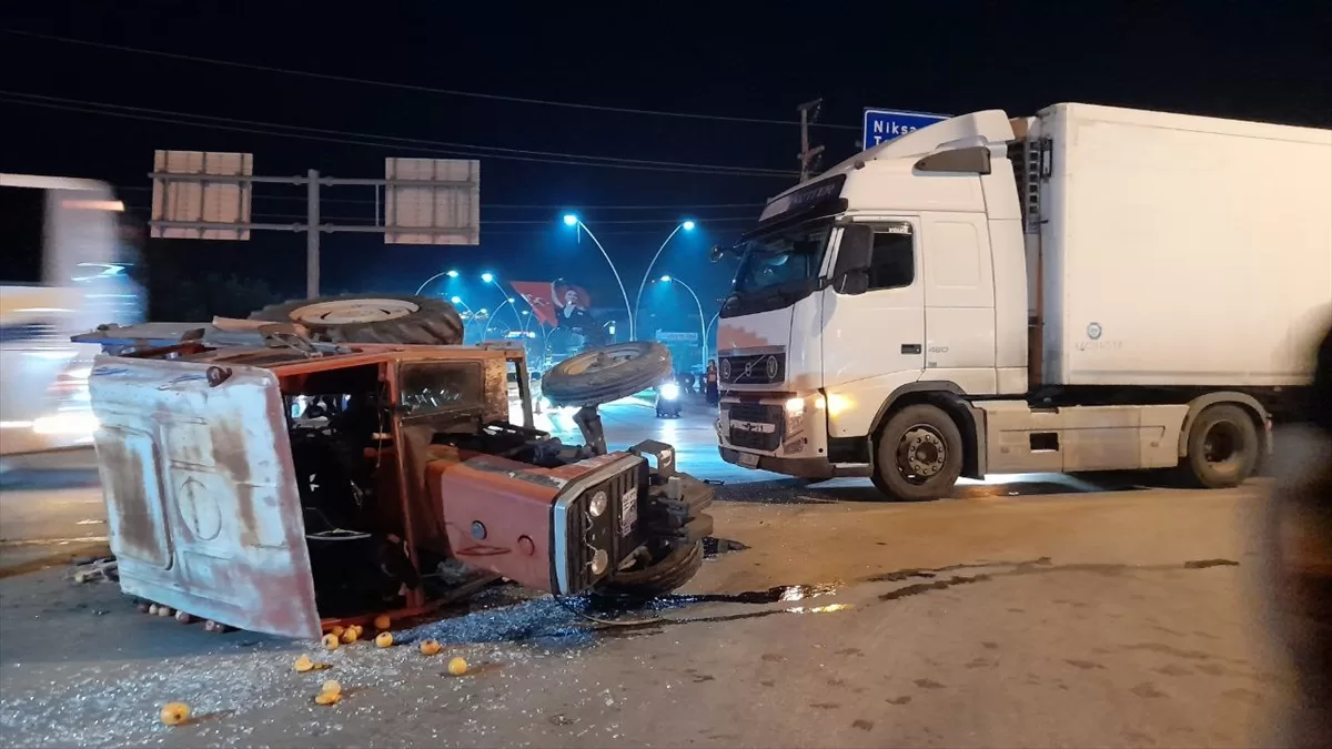 Taşova istikametine seyreden Bilal Akbulut'un kullandığı 33 CUH 37 plakalı tırla Mustafa Gürel yönetimindeki 05 HE 513 plakalı traktör, D-100 karayolu otogar kavşağında çarpıştı.