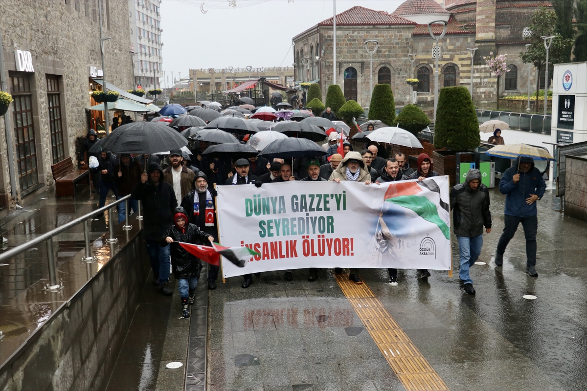 Ortahisar ilçesindeki İskenderpaşa Camisi önünden yürüyüşe başlayan grup üyeleri, ellerinde Türk ve Filistin bayraklarıyla sloganlar atarak, Kahramanmaraş Caddesi'ndeki Ziraat Bankası önüne kadar yürüdü.