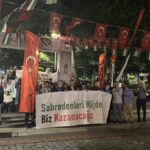 Özgür Aksa Trabzon Platformu öncülüğünde 15 Temmuz Şehitleri ve Hürriyet Parkı'nda bir araya gelen vatandaşlar, "Trabzon, Gazze omuz omuza", "sessiz kalma suça ortak olma", "denizde Sumud Gazze'de umut", "Kudüs bizimdir, bizim kalacak", "nehirden denize özgür Filistin" sloganları attı.